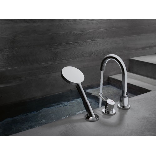 • consists of: 3-hole rim mounted single lever bath mixer, hand shower, shower holder